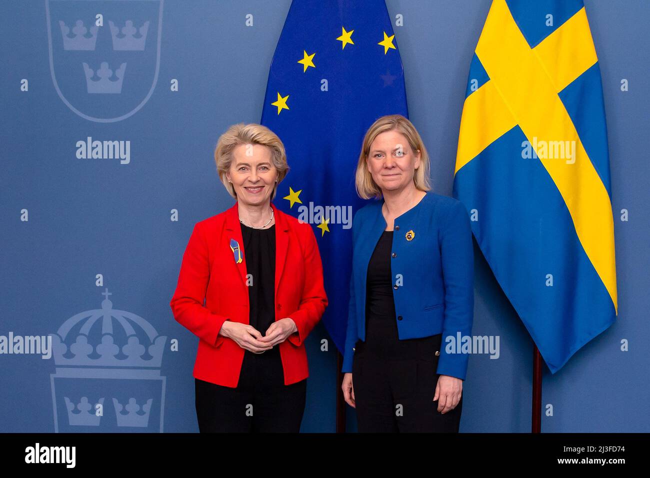 Premierministerin Magdalena Andersson Und Eu Kommissionsprasidentin Ursula Von Der Leyen Treffen Sich Am 7 April 2022 In Stockholm Schweden Um Uber Die Lage In Der Ukraine Und Die Auswirkungen Auf Europa Zu Diskutieren